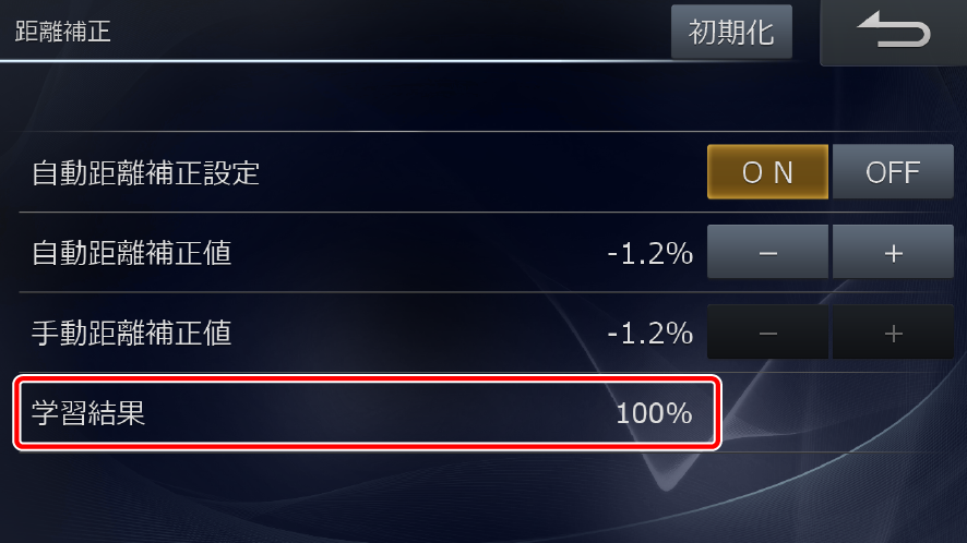 [その他]タブにタッチし、[距離補正]にタッチします。「学習結果」に学習の進度状況が表示されます。