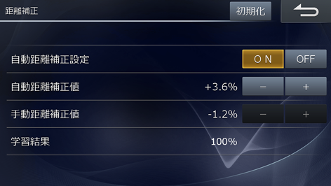 「自動距離補正設定」の[ON]にタッチします。走行すると自動的に距離補正を行います。