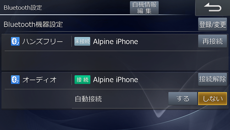 BLUETOOTH機器の接続が解除され、[接続解除]が[再接続]に変わります。
