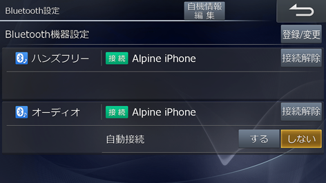 [Bluetooth設定]にタッチし、[自機情報編集]にタッチします。