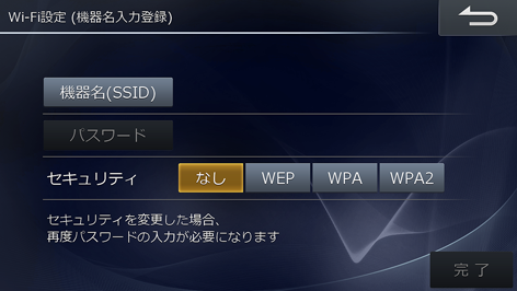 セキュリティの種類を[なし][WEP][WPA][WPA2]のいずれかにタッチして選びます。