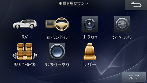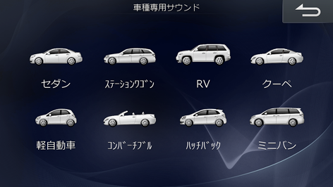 車種専用チューニングで設定した後に、使用する条件によって車室内の音響を変更することができます。