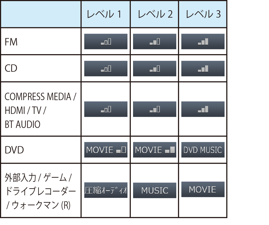 COMPRESS MEDIA・HDMI・TV・BT AUDIOは、いずれかの設定を変えると同じMXレベルに設定変更されます。