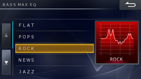設定値:FLAT、POPS、ROCK、NEWS、JAZZ、ELECTRICAL DANCE、HIP HOP、EASY LISTENING、COUNTRY、CLASSICAL