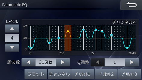 ParametricEQ(パラメトリックEQ)は、中心周波数・Q(帯域幅)・レベルをそれぞれ調整できるので、狙った帯域だけを微妙に調整することができます。高度で本格的な補正や音創りを行うことができます。