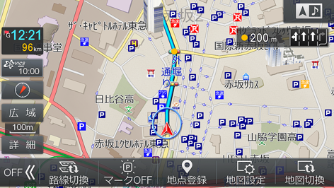 VICS提携駐車場、充電施設のマークを地図上に表示できます(初期設定値は「しない」)。