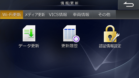 NAVI/[MENU]スイッチを押し、ナビメニュー画面で[情報/更新]にタッチします。