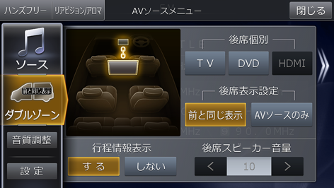 「後席表示設定」の[前と同じ表示]または[AVソースのみ]にタッチします。
