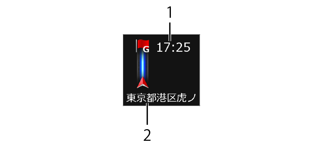 ルート案内時、リアビジョン画面に行程情報を簡易表示します。
