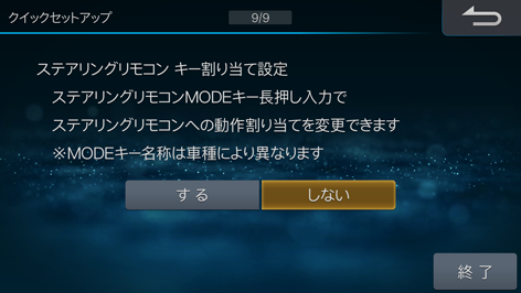 ステアリングリモコンのキー割り当てを変更する場合は[する]にタッチします。