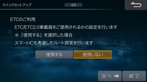 ETC/ETC2.0車載器を使用する場合は[使用する]にタッチします。