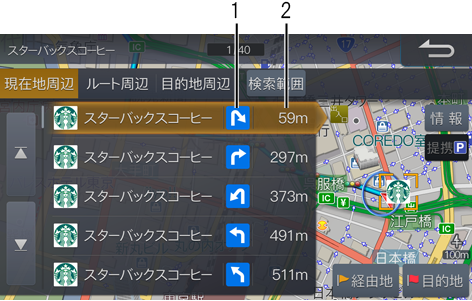 現在地周辺にある施設を検索して、ジャンルで絞り込むことができます。