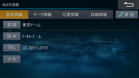 地点登録時に表示される登録地点情報画面で、地点名称など、基本情報の編集を行います。