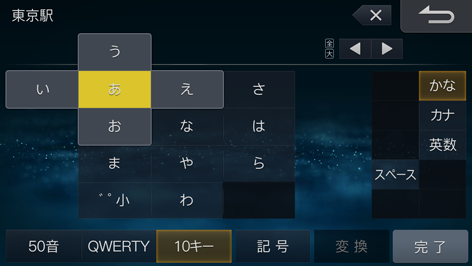 10キーのいずれかのキーにタッチすると、キーに割り当てられた文字や数字、記号が表示されます。タッチしたまま文字が表示されている方向に指を動かすと文字を入力できます。