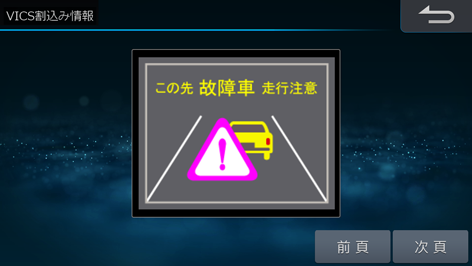[VICS情報]タブにタッチし、[割込み情報]にタッチします。