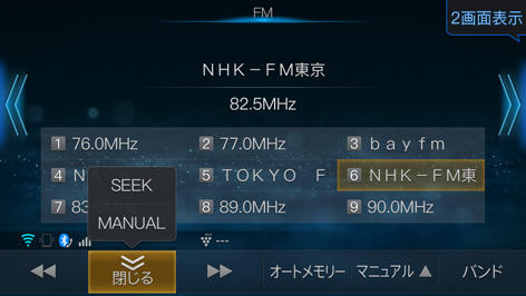 放送局を選局するときのモードを選びます。タッチスイッチには選んだシークモードが表示されます。