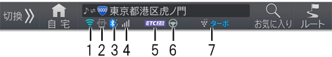 ETC車載器接続時はETCインジケータ、ETC2.0車載器接続時はETC2.0インジケータが表示されます。使用状態で色が異なります。