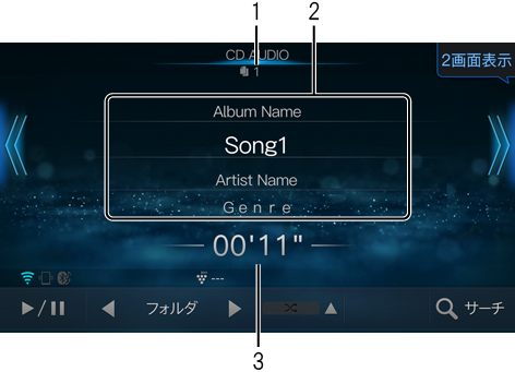 本機でCDディスクを再生した場合、本機に収録されているGracenoteデータベースから検索したアルバム名やアーティスト名、曲名、ジャンル名などのタイトル情報とアートワークを表示できます。