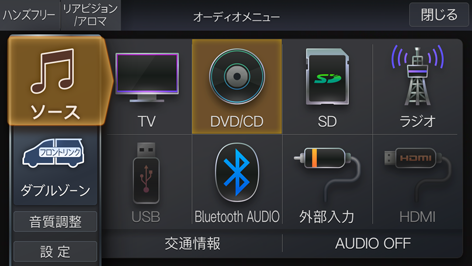 /[MODE]スイッチを押し、オーディオメニュー画面で[DVD/CD]にタッチします。