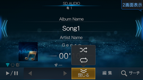 例えばサーチでアルバムを選択してからミックスモードにすると、アルバム内のミックス再生を行います。SD内全曲ミックス再生を行うには、サーチ画面の「曲」選択で何か曲を選んでから、ミックス再生を行ってください。