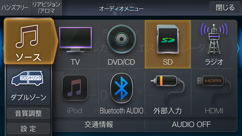 /[MODE]スイッチを押し、オーディオメニュー画面で[SD]にタッチします。