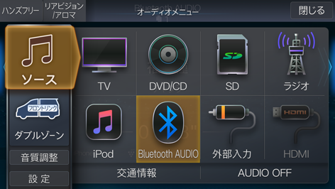 BLUETOOTHオーディオ使用中にハンズフリー機能・通信機能・電話帳転送機能を使用すると、一時的にBLUETOOTHオーディオ機能が停止したり、音切れやAVプロファイルが切断されたりする場合があります。