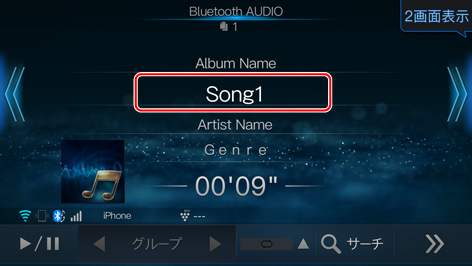 BLUETOOTHオーディオ画面で曲名表示部分にタッチします。