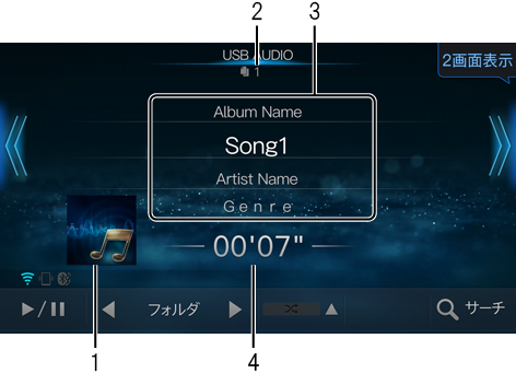 3.曲名/アルバム名/アーティスト名/ジャンル表示