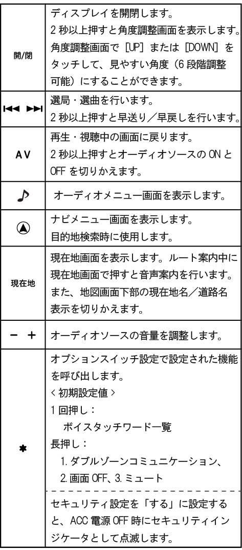 取り付け車種によりスイッチ形状・配列・名称が異なります。下記イラストは実際の製品と異なる場合があります。