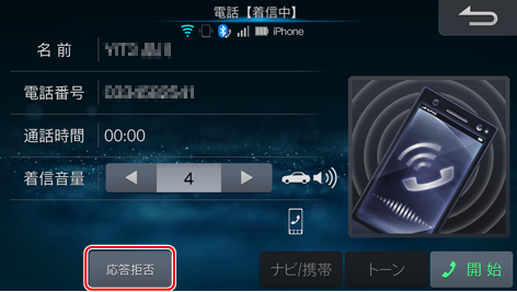 電話着信中に[応答拒否]にタッチすると、着信状態を解除します。