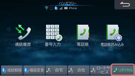 直前にかけた電話番号に電話をかける(リダイヤル)