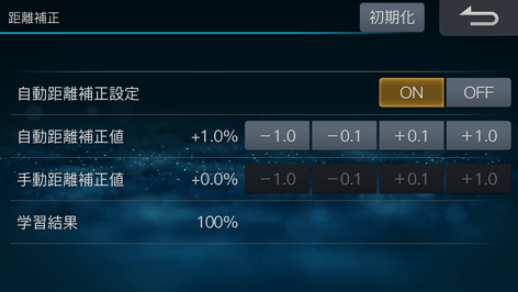 通常はそのままご使用いただけますが、自車位置が大きくずれる場合やタイヤを交換した時は、距離補正値の初期化を行ってください。その後見通しの良い道路を数十km走行すると、自動補正が完了します。