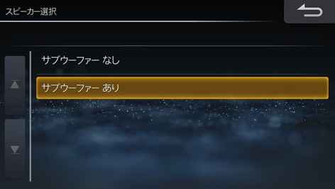 [サブウーファー]にタッチし、サブウーファーの有無を選んでタッチしたあと[決定]にタッチします。
