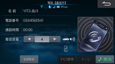 <「する」設定時・着信全画面表示例>