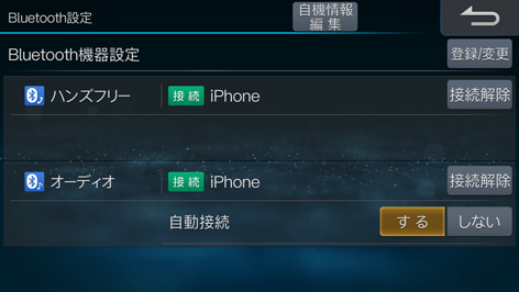 [Bluetooth設定]にタッチし、[自機情報編集]にタッチします。