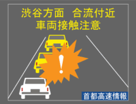 走行ルート上に渋滞や落下物などがある場合、簡易図形と音声で注意喚起を行います。