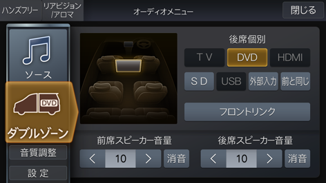 「後席個別」で「前と同じ」「フロントリンク」を選んだときは、後席スピーカー音量は調整できません。