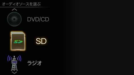 ジョイスティックを上下に押してソースを選択し、[決定]を押します。