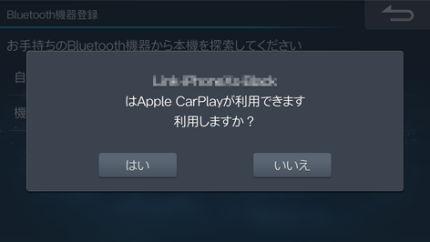 Apple CarPlayが利用できるiPhoneを使用している場合は、Apple CarPlay利用確認画面が表示されます。