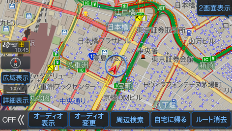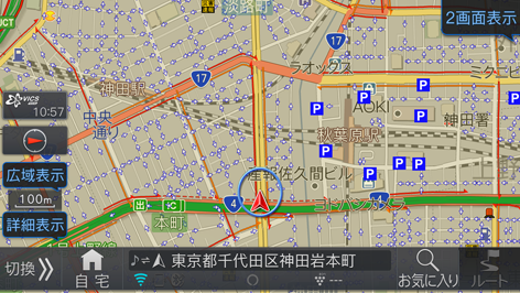 渋滞・混雑・空き道表示は地図スケールが1km以下の詳細な地図で表示されます。