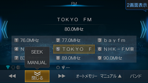 ラジオ画面で[SEEK]または[MANUAL]にタッチします。