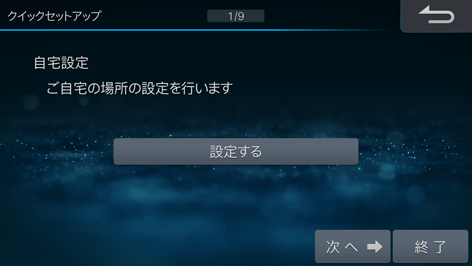 設定途中で[終了]にタッチすると、次回起動時にもクイックセットアップ画面が表示されます。