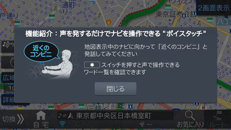 ボイスタッチについての機能紹介画面が表示されたら[閉じる]にタッチします。