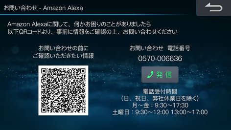 Amazon Alexaに関するお問い合わせ先を表示できます。携帯電話を接続している場合は、お問い合わせ先に電話をかけることができます。