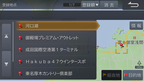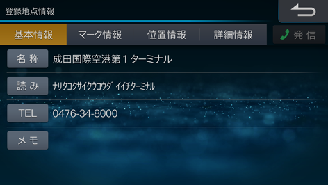 地点を選び、[情報]にタッチします。登録地点情報画面が表示されます。