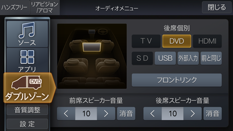 「後席個別」で「前と同じ」「フロントリンク」を選んだときは、スピーカー音量は調整できません。