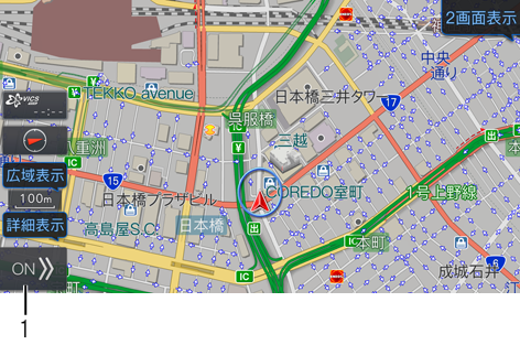 1. タッチするとナビ操作モード1に切りかわります。