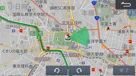 にタッチして方向を指定し、[完了]にタッチします。