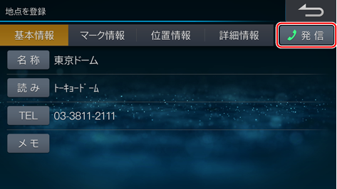 地点登録時に地点情報画面が表示されたら、[発信]にタッチして電話をかけます。