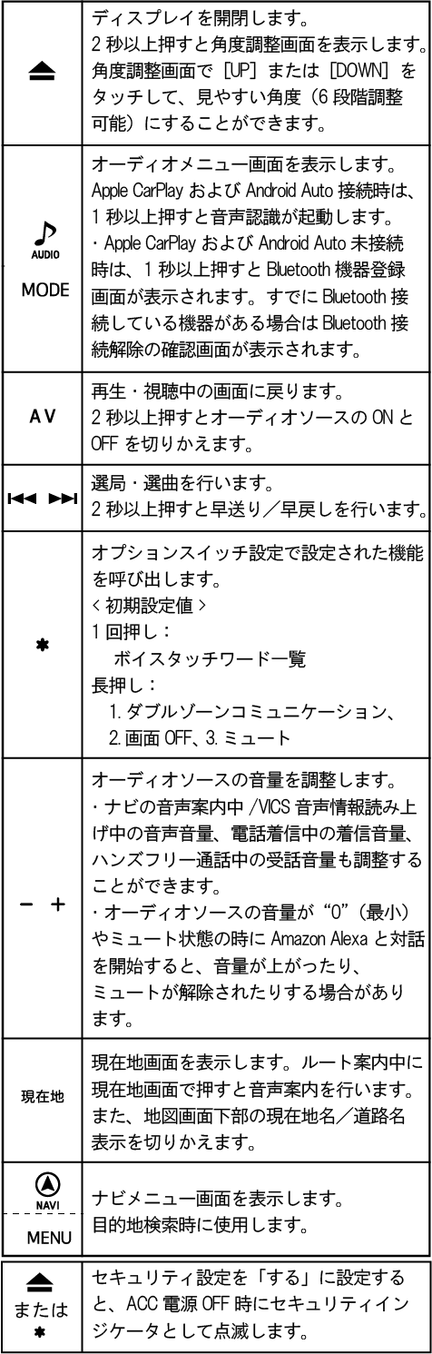 取り付け車種によりスイッチ形状・配列・名称が異なります。下記イラストは実際の製品と異なる場合があります。